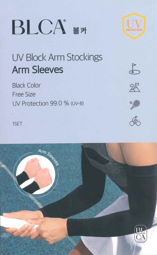 このアームカバーは、美容大国韓国から届いた、紫外線から肌を守りたいという多くの女性の願いを叶えるために開発されたUVアームカバーです。 ストッキング素材を使用しており、激しいスポーツ中でもずれにくく、心地よいフィット感を提供します。 手洗い可能で、何度洗濯してもUVカット効果は持続します。 肌を守りながら、動きやすさを追求したこのアイテムは、スポーツ、ジョギング、ハイキング、ゴルフ、運転をはじめアウトドアなどのアクティブシーンで大活躍します。 〇素材〇 ナイロン 70% プリウレタン 30% 〇カラー〇 ブラック 〇サイズ〇 Free 〇UV率〇 99.0% 〇お手入れ方法〇 ・画像のQ&Aを参照ください。 〇注意事項〇 ※お肌に異常が生じていないかよく注意し、ご使用ください。 ※傷やはれもの、しっしん等、異常のある部位にはお使いにならないでください。 ※使用中、赤味、かゆみ、刺激などの異常があらわれた場合は使用を中止してください。 ※乳幼児の手の届かない所に保管してください。 ※製品の特性上、左右の長さに若干の誤差が生じる場合が生じます。 【韓国製】 ※韓国で注目を集めているBLCA UVアームカバーは弊社が正規品になります。類似品にはお気をつけください。