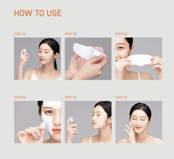 5:コラーゲンミストをたっぷりとスプレーして、コラーゲンフィルムを肌になじませます