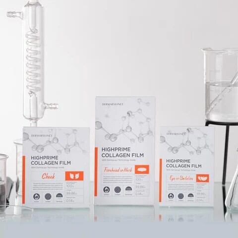 コラーゲンをシート状のフィルムにした、スペシャルケアアイテム。原料はコラーゲン*1、加水分解コラーゲン*1、ヒアルロン酸*1の3つのみ。コラーゲンと加水分解コラーゲンを合わせた配合率は99%以上です。肌に乗せ、水や化粧水などの水分で溶かして使います